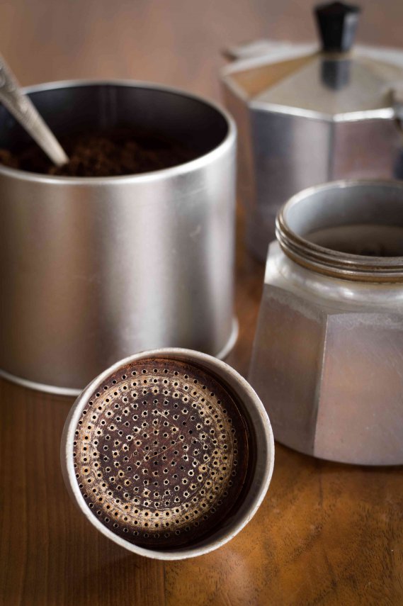 La pulizia della parte esterna della caffettiera è tutto sommato semplice: bastano una spugna morbida, per non rigarla, e un prodotto per rendere lucido l'alluminio come ad esempio Sidol per metalli. Quando si strofina, sarà necessario un po' più olio di gomito nella parte inferiore, che risulterà annerita dalla fiamma del fornello. Per la parte interna, compresi filtro e guarnizione, serve invece maggiore attenzione.