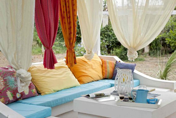 Un’idea divertente e creativa consiste nell’utilizzare il tessuto di vecchie tende per realizzare fiori colorati da applicare sulla fodera di vecchi cuscini, con la colla o con ago e filo. Puoi creare, ad esempio, piccole roselline arrotolando una lunga striscia di stoffa su se stessa, a spirale: vedrai che aspetto romantico assumerà la tua camera da letto!
