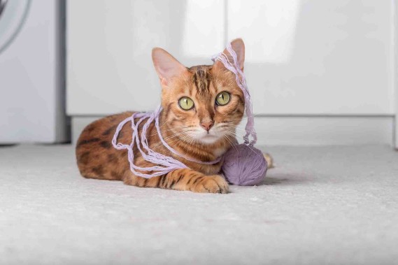 "Storicamente" i gatti sono associati ai gomitoli di lana, che adorano rubare ai proprietari mentre magari questi sono intenti a sferruzzare. Iniziano a morderli e a portarli in giro per casa, mentre il filo pian piano si toglie dalla matassa e diventa un gioco irresistibile. I gatti pensano che sia una preda che tenta di scappare rotolando via e per questo motivo si divertono a rincorrere i gomitoli. Sono così colorati, sfuggenti, texture morbide e perfette per infilzare le unghie: impossibile resistere.