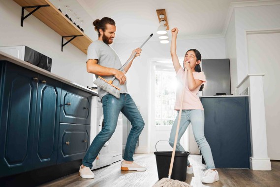 - Cominciare dalla porta della stanza: bisogna iniziare dal fondo, sia quando si passano la scopa o l’aspirapolvere a terra sia quando si dà lo straccio. Così da non rimanere “imprigionati” dalle piastrelle bagnate.