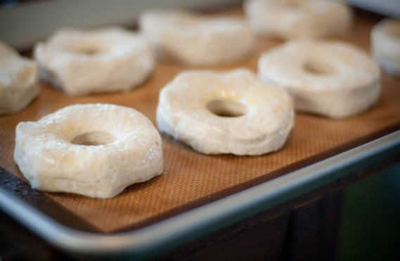 Prendere dall'mpasto delle piccole palline, formare dei cordoncini da arrotolare su sé stessi fino a trasformarle in ciambelle oppure se ci piacciono di forma più regolare sfruttando lo stampo apposito. Prima di inserire nella teglia spolverare ogni ciambella con lo zucchero.