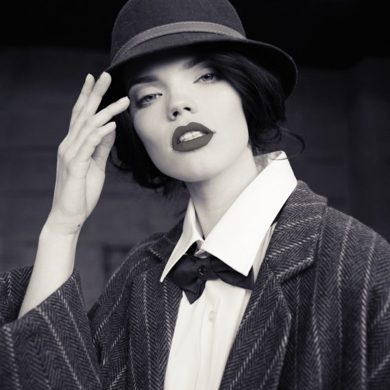 Per quanto riguarda il trucco, il make-up è un po' anni '30, dando molta enfasi alle labbra, scegliendo un rossetto rosso scuro o color mattone. Grande evidenza, nel trucco occhi, ce l'hanno invece le sopracciglia, che devono essere ben definite e truccate in modo che siano ben visibili.