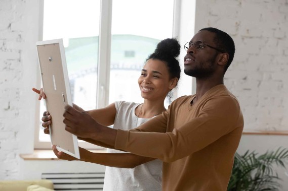 Per poter creare un ambiente armonioso, dovremo posizionare al meglio quadri e cornici, giocando di proporzioni e dimensioni, fissando le decorazioni alle pareti in modo che siano sempre sicure, anche in caso di terremoto. Prima di procedere con chiodi e martello, è bene posizionare mentalmente i quadri sulla parete per avere un'idea dello spazio che andranno ad occupare, soprattutto se pensiamo di sistemare più cornici vicine nella stessa stanza.