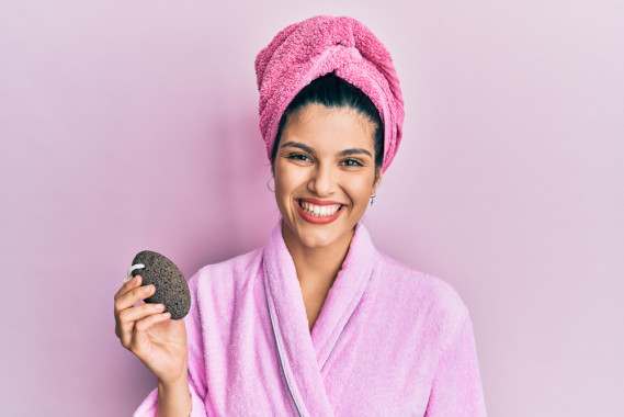 La pietra pomice è una pietra porosa e abrasiva che viene utilizzata per rimuovere la pelle secca e morta. Si forma quando lava e acqua si mescolano. Quando la lava si raffredda, crea una pietra dalla trama particolare che la rende un eccellente esfoliante.