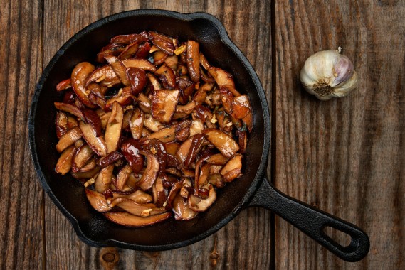 Rosolarli in padella. Scottare i funghi in una padella calda produce bordi croccanti e un sapore ricco. Piuttosto che una sensazione in bocca morbida e viscida, ti ritroverai con un morso perfetto che è tenero ma anche caramellato. Questa è una reazione chimica che vediamo spesso in alimenti come carne, verdure e persino chicchi di caffè.