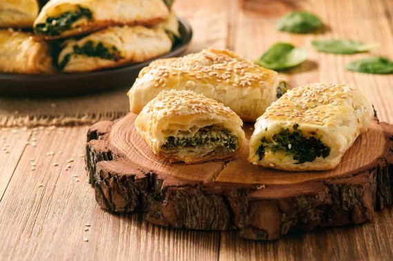 Dividiamo la fojata a metà e mettiamo i quattro bastoncini ripieni in una teglia rivestita di carta da forno. Spennelliamo con olio extravergine di oliva e facciamo cuocere in forno caldo a 200 gradi per 25 minuti.