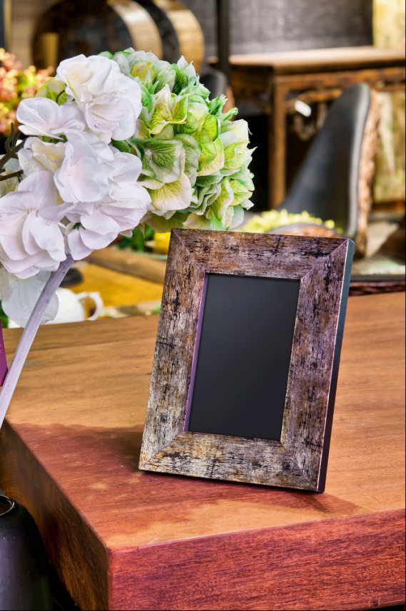 Per ottenere un quadro naif e bucolico completa le cornici applicando nel retro un fondo di cartoncino bianco o compensato verniciato, all'interno potrai creare delle fantasiose composizioni utilizzando arbusti, gambi di rose oppure delle foglie.