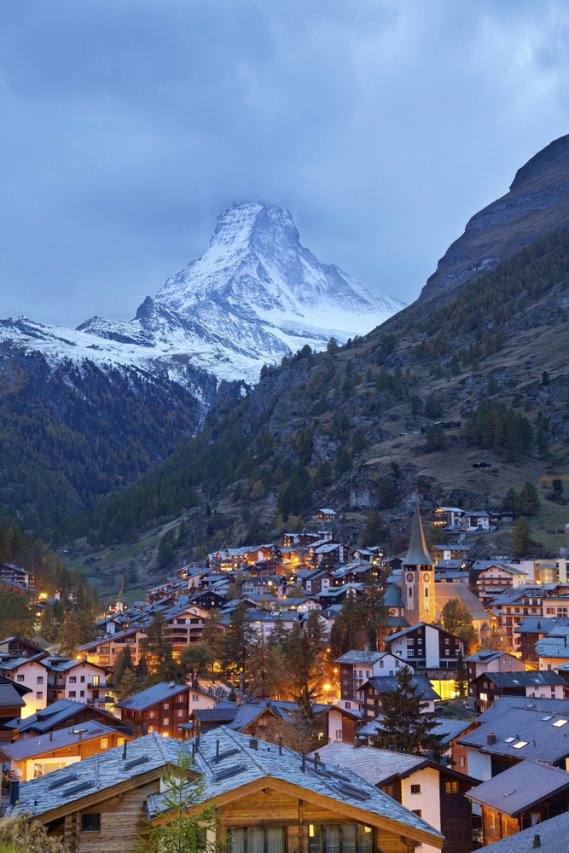 A Zermatt, delizioso paesino svizzero, è possibile vedere tutto l'anno lo spettacolo della piramide di ghiaccio denominata 'Matterhorn'. Per raggiungere Zermatt si possono utilizzare solamente minibus e taxi elettrici offerti dagli hotel mentre i più spericolati possono arrivarci da Cervinia con gli sci ai piedi poiché in questo paese non è consentita la circolazione delle autovetture. Sono le carrozze trainate dai cavalli a rompere il silenzio di questo luogo immacolato. Con un trenino a cremagliera, il 'Cornergrat Bahn', dal centro si possono raggiungere i 3 mila metri di altezza arrivando a sfiorare cime innevate che superano i 4 mila metri d'altezza. Una funivia sotterranea trasporta gli sciatori sui campi da sci in soli tre minuti mentre un'altra funivia 'futuristica' trasporta il turista fino al Piccolo Cervino.