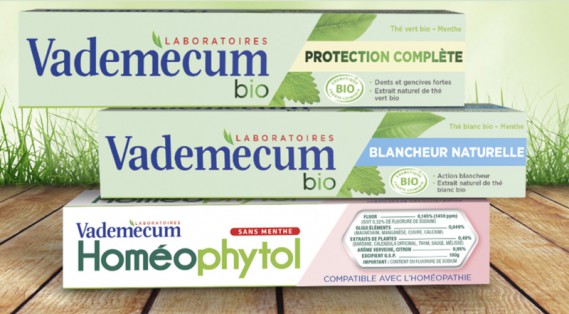 Esiste poi un terzo dentifricio compatibile con i principi dell'omeopatia, si tratta di Vademecum Homéophytol che è senza menta. Come mai? L'assorbimento della menta contenuta nella maggior parte dei dentifrici potrebbe essere sconsigliato durante i trattamenti omeopatici. Per questo Vademecum Homéophytol è caratterizzato dall'essenza di verbena e limone, che garantiscono comunque una piacevole sensazione di freschezza e di pulito. Ovviamente, anche in questo prodotto è contenuto il fluoro.