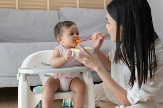 A 8 mesi, puoi iniziare a lasciarlo mangiare con le mani.