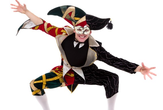 - Arlecchino, maschera di Bergamo (veneziano d'adozione, però): personaggio buffo, istrionico, colorato come il suo costume, composto da pezzi di stoffa e toppe di colore diversi, messi a caso. Lui è fidanzato con Colombina.
