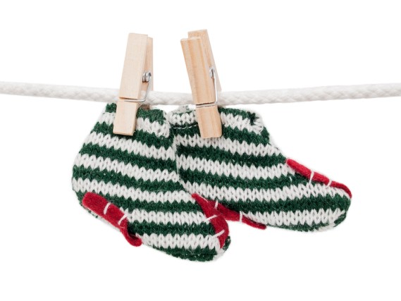 Calzini spaiati e calze bucate sono perfette per la calza della Befana fai da te. Se ci sono buchi, coprili con una sagoma di stoffa, in alternativa puoi rammendare il calzino in modo creativo.