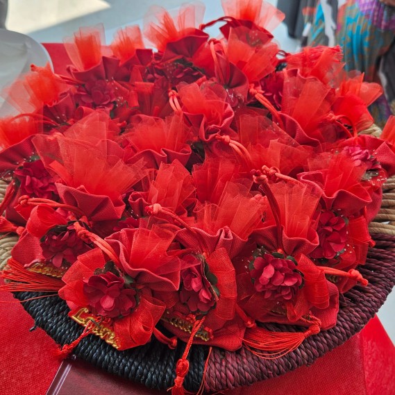 - Fiorellini finti rossi già composti in un piccolo bouquet;