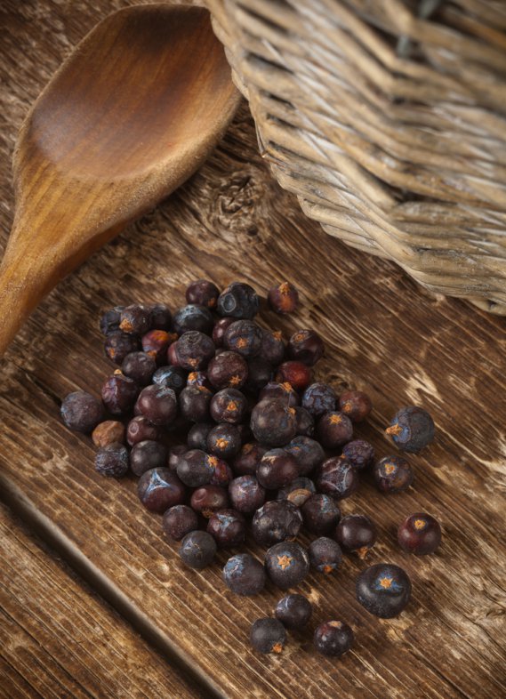 Ciò che viene utilizzato in cucina sono le bacche di ginepro, che nascono solo dai fiori femminili, di forma sferica e di colore che con la maturazione diventa viola. È il suo stesso nome che deriva dalla parola celtica ‘juneprus’, che significa ‘acre’ a definire la sua caratteristica principale. Già al tempo dei Romani era molto apprezzato in cucina e spesso utilizzato in sostituzione del pepe.