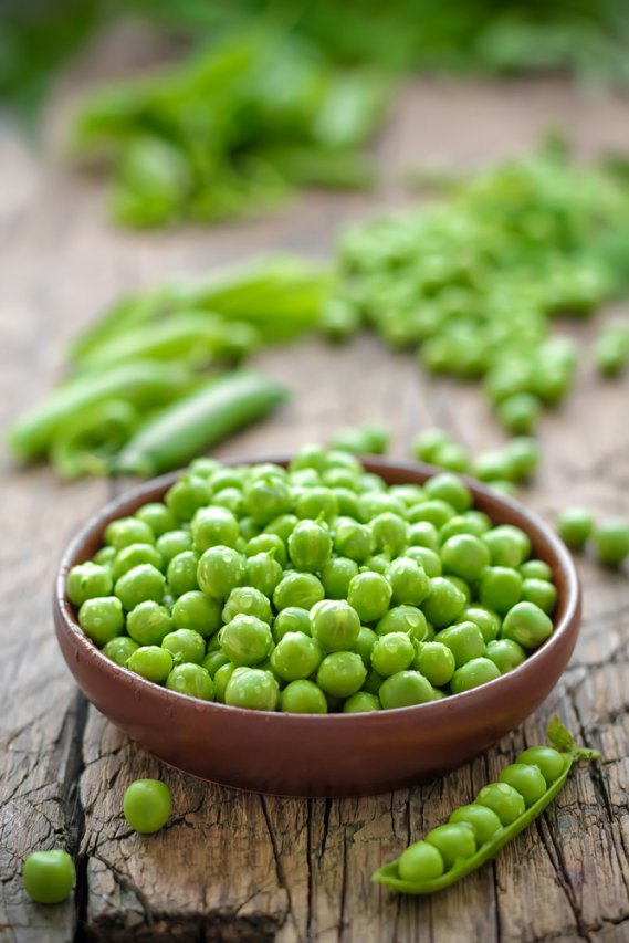 I piselli sono largamente usati nei regimi dietetici per il loro basso contenuto calorico e il grande apporto nutriente che riescono a dare. Infatti, contengono vitamina A, C, B1, B2, PP, potassio, calcio, magnesio e fosforo.