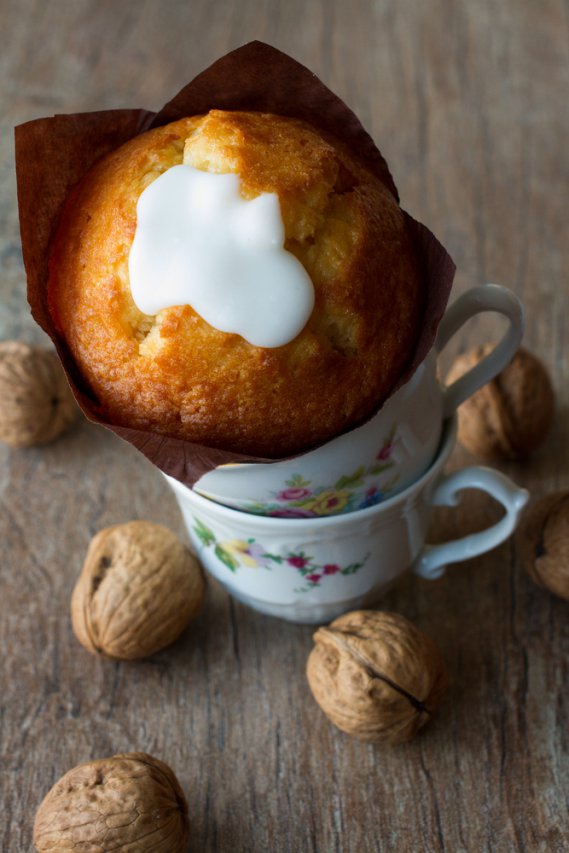 Prepara una glassa al limone con lo zucchero vanigliato, un cucchaino di albume e aroma di limone.