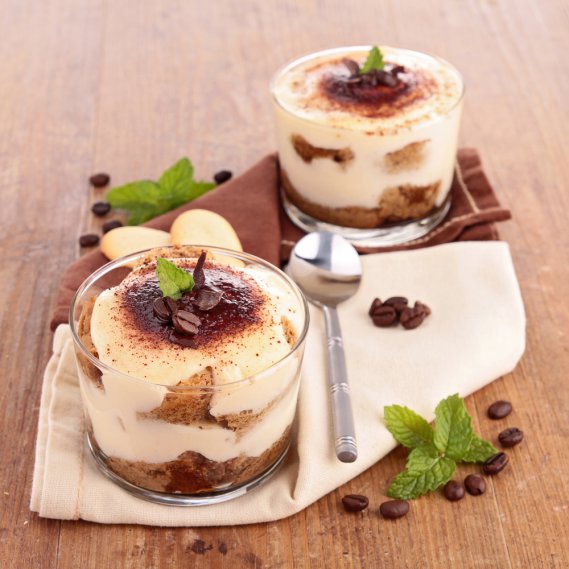 Monta la panna con lo zucchero, bagna il primo disco di pan di spagna con il latte, il caffè e il rhum (facoltativo) precedentemente miscelati e zuccherati. Metti della panna sul disco e copri con un altro disco, bagnato come il primo strato e aggiungi della panna. Procedi così anche con il terzo strato, infine decora le coppette con una siringa per dolci. Con un pò di fantasia, le coppette risulteranno oltre che molto buone anche vezzose.