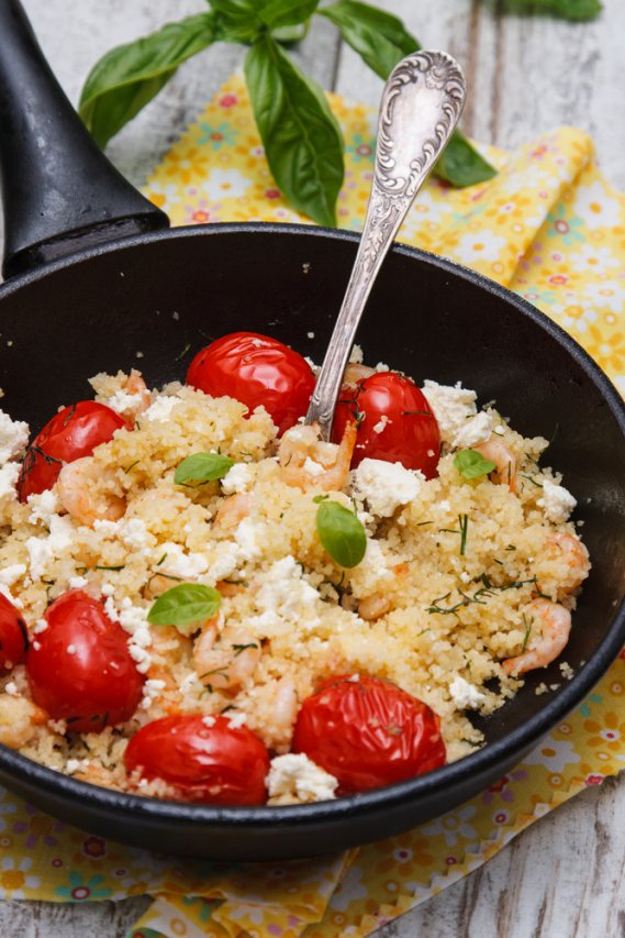 Preparare il cous cous secondo le indicazioni riposrate sulla confezione. Una volta cotto, unire il pesto, aggiungi i pomodorini tagliati a pezzetti, le scaglie di parmigiano, le foglie di basilico e servi.