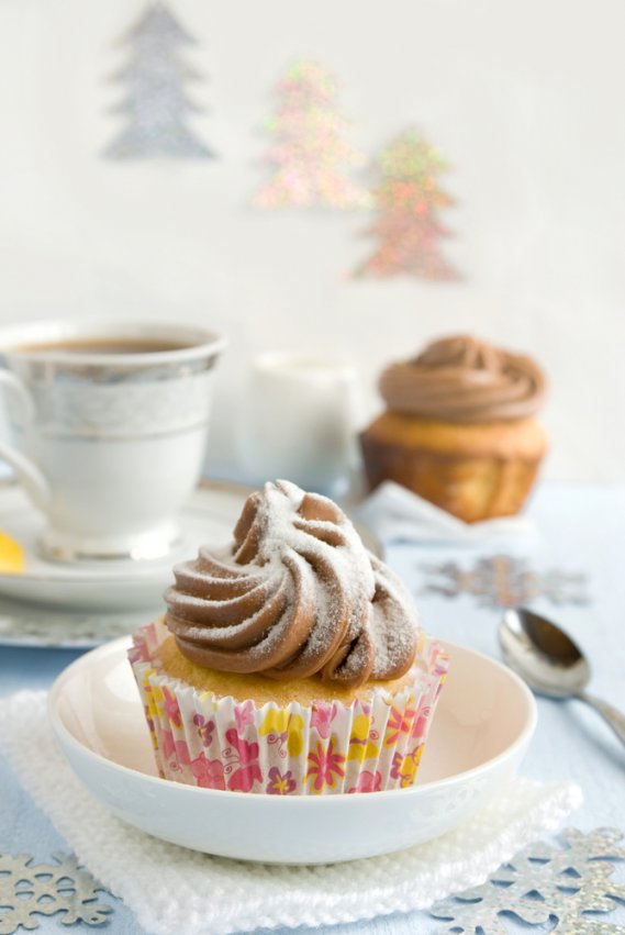 Lavora in una terrina il burro con lo zucchero. Incorpora le uova, la farina setacciata con il lievito e il cacao, la vanillina. Versa il composto nei pirottini disposti nella teglia per muffin. Riempili per metà. Cuoci i cupcakes in forno già caldo a 180°C per circa 16 minuti. Sforna e fai raffreddare. Intiepidisci legegrmente la Nutella nel microonde e malgamala bene con il mascarpone; metti il composto in un sac à poche con una bocchetta a rosetta grande e decora la superficie dei cupcakes.