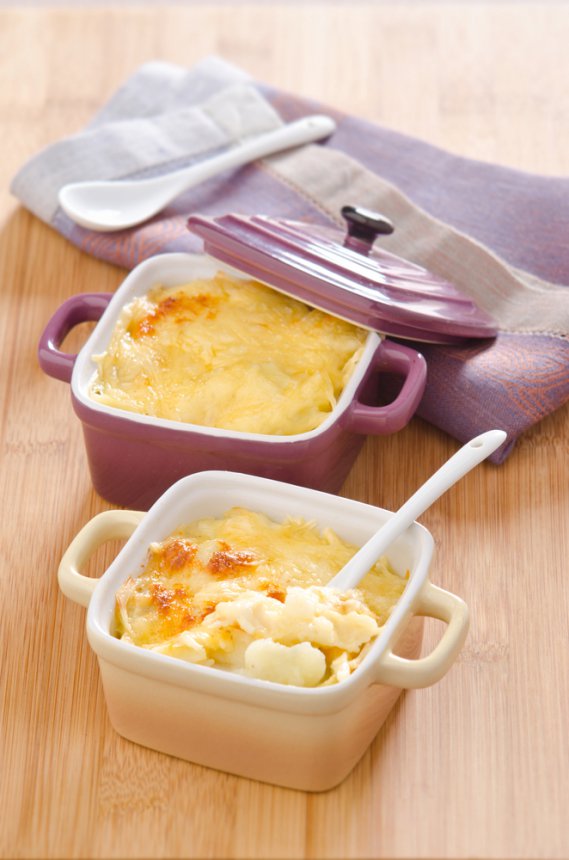 Lava il cavolfiore, dividilo a ciuffetti e cuocilo per 10 minuti al vapore. In un terrina, mescola le uova, il latte e la panna; aggiusta sale e pepe a piacimento. Trita l'erba cipollina. Distribuisci il cavolfiore negli stampini e coprilo con la preparazione. Spolverizza di erba cipollina ed emmental. Metti in forno e cuocere per 30 minuti a 150°C.