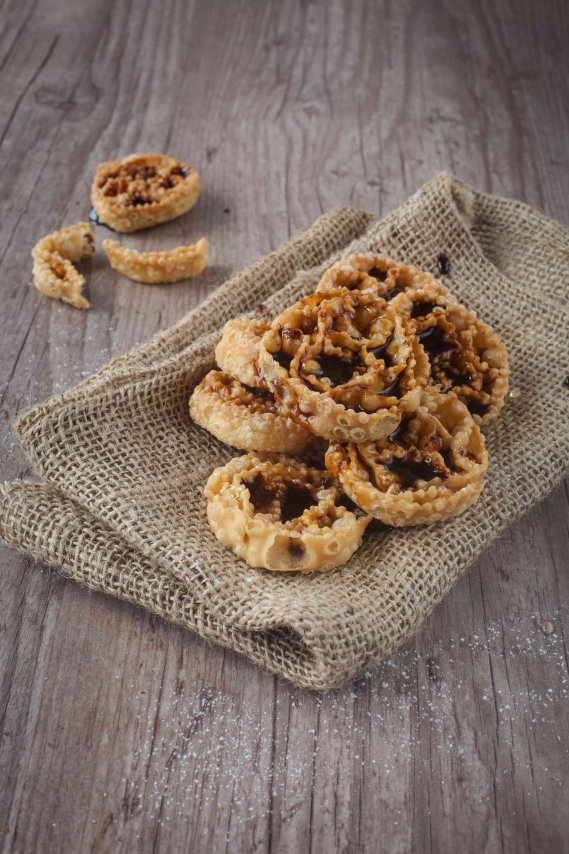 Preparare la ricetta delle nevole pugliesi, dolce natalizio semplice ma goloso, è semplicissimo. Metti la farina a fontana sul tavolo da lavoro. Al centro versa il vino intiepidito e l'olio. Sciogli un pizzico di sale in 50 cl di acqua tiepida che utilizzerai per impastare tutto il composto affinché risulti né troppo duro né troppo morbido. Otterrai cosi una pasta uniforme ed elastica. Dall pasta ricava tante palline palline di dimensioni uguali, che poi stenderai una ad una col mattarello. Taglia delle strisce della larghezza di 3 o 4 cm con la rotella per la pasta. Piega in due le strisce e uniscile, con le dita, a distanza di 3 cm, creando così delle conchette. Arrotola su se stesse le strisce a spirale e falle asciugare e riposare per circa 6 ore. Friggi le nevole in abbondante olio bollente, poi - una volta scolate - immergile completamente nel vincotto di fichi o nel miele.