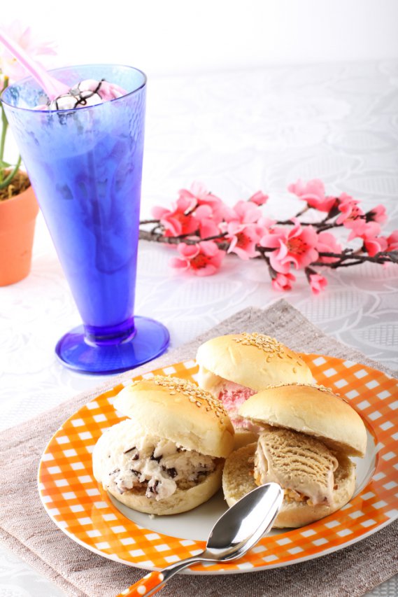 Perchè sembrino proprio panini da tenere in mano, taglia semplicemente a metà i panini e farcisci con il gelato.