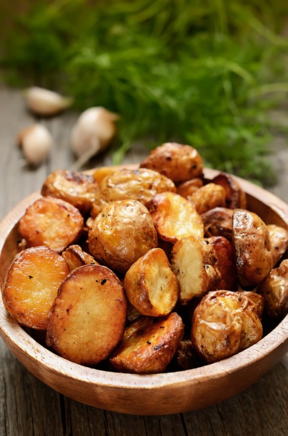 Tagliate a spicchi le patate dopo averle sbucciate; tritate la cipolla e soffriggetela per 5 minuti, a fuoco molto basso nell'olio e nella margarina. Aggiungete le patate, salatele, mescolatele con un cucchiaio di legno e cuocetele, a tegame coperto, per 20 minuti. Tritate grossolanamente i gherigli di noce; lavate, asciugate e tritate le foglie di prezzemolo. Versate in un piatto di portata le patate precedentemente cotte, cospargetele con un trito fatto con le noci e con il prezzemolo. Servite.