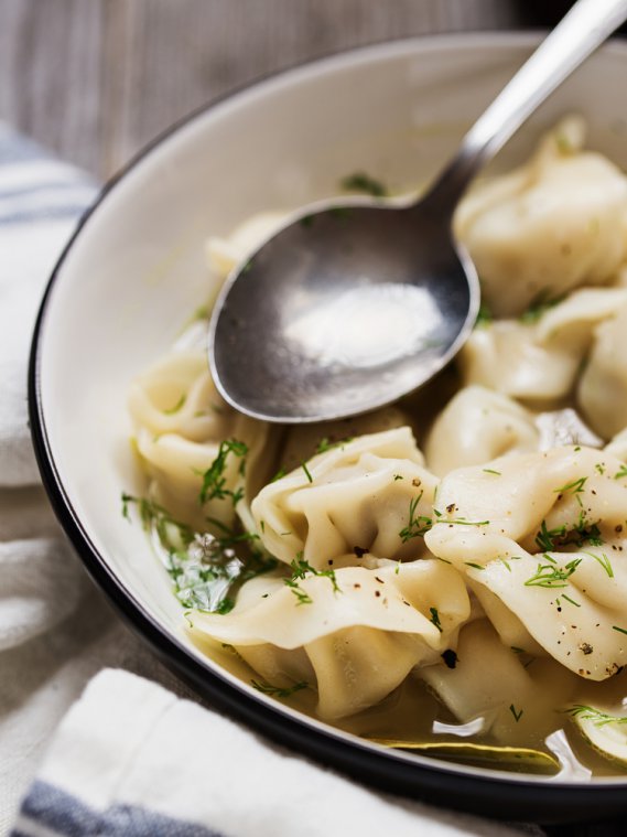 I ravioli di patate in brodo di cappone sono un piatto elaborato per le grandi occasioni.