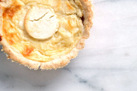 Forma una palla, copri con della pellicola e lascia riposare l'impasto per circa un'ora in frigorifero. Stendi l'impasto a uno spessore di circa 4 mm e sistemalo nella teglia prescelta, leggermente imburrata o oliata. Punzecchia il fondo con una forchetta e distribuisci sopra il brie a fettine. Sbatti le uova con la panna, salare, pepare e versare sopra la torta; per ultimo disponi il formaggio di capra a fettine.
