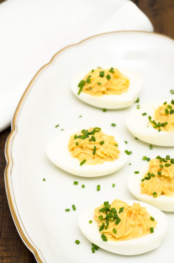 fai bollire le uova per 8 minuti nell'acqua bollente. Lasciale raffreddare nella loro acqua, sgusciale e tagliale in due; togli il tuorlo e metti in un piatto da portata gli albumi incavati. Passare i tuorli al setaccio o sulla grattugia per il formaggio, per riuscire a ottenere “la mimosa". Mescolare i 2/3 del tuorlo alla maionese e riempi gli albumi; mescola i tuorli rimanenti all'erba cipollina tritata e guarnisci tutte le uova. Conserva le uova in frigorifero fino al momento di servirle.