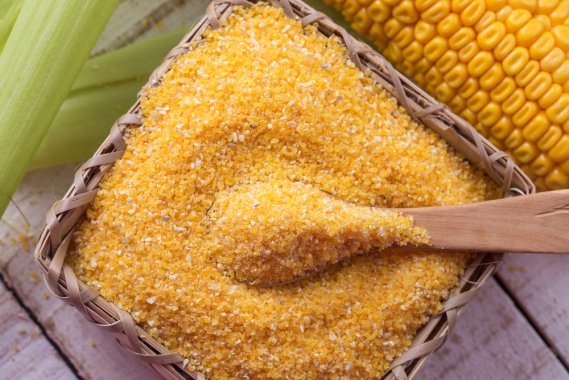 Tritate la cipolla e fatela appassire con l\'olio in una pentola di terracotta. Unite l'insalata precedentemente lavata con cura e tritata finemente. Mescolate e lasciate appassire l'insalata nel condimento. Dopo circa 10 minuti, condite il tutto con un pizzico di sale e un po' di pepe; aggiungete il brodo, mescolate e portate a lenta ebollizione. Versate quindi a pioggia la farina gialla, mescolando di continuo per evitare il formarsi di grumi. Lasciate cuocere per 25 minuti a fuoco lento, poi completate la zuppa con il formaggio di soia grattugiato; mescolate ancora e versatela nelle singole fondine, in cui avrete posto, in precedenza, le 12 fette di pane raffermo tostato in forno. Servite subito in tavola.