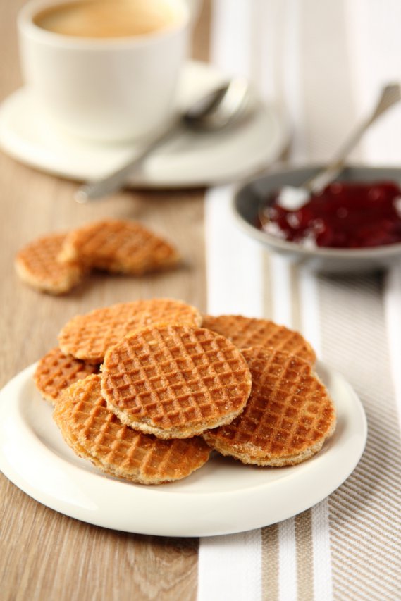Gli stroopwafels sono cialde croccanti originarie della città di Gouda nei Paesi Bassi nel XVIII secolo. Pare che fino al 1870 gli stroopwafels fossero prodotti solo a Gouda dove c’erano almeno cento fornai che vendevano questi biscotti.