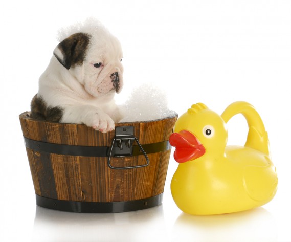 Quando ci rendiamo conto che è pronto (non prima di un mese dall’arrivo a casa e dei due mesi d'età) possiamo riempire la vasca, i primi tempi con qualche dito di acqua e tanti giochini con cui il cucciolo possa trastullarsi mentre immergiamo le zampine e lo insaponiamo con detergente diluito facendo molta attenzione ad evitare testa, occhi e orecchie.