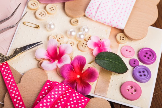 Cartoncini colorati, bottoni, forbici, colla a caldo, spiedini di legno, washi tape, lattina, mollette per panni, nastri di cotone