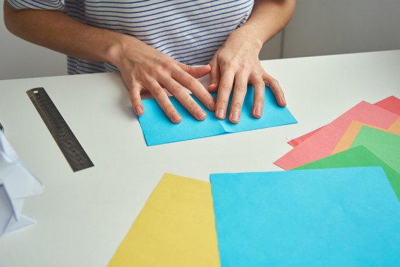 1. Piegare a metà, e poi in quattro il foglio facendo combaciare i due lati del quadrato.