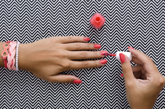 Per quanto riguarda l'applicazione dello smalto corallo, trattandosi di una tonalità piuttosto carica, dobbiamo fare attenzione a non sbordare e macchiare la pelle. L'ideale è usare i prodotti appositi per la manicure, che creano un film protettivo sulla pelle che circonda l'unghia, così da permettere una stesura più precisa del colore.