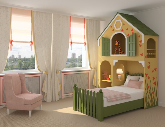 3. Al parco: una parete mostra alberi che si arrampicano fino al soffitto; un'altra è caratterizzato da un paesaggio urbano. E perché non mettere l'altalena e lo scivolo.