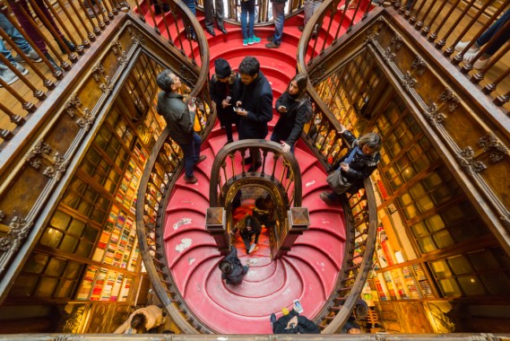 Livraria Lello (Porto, Portogallo). É ampiamente considerata la libreria più bella del mondo, la neogotica Livraria Lello a Porto, in Portogallo. Progettata dall'ingegnere Francisco Xavier Esteves e aperta dai fratelli José e António Lello nel 1906, presenta intricate sculture in legno, scala a chiocciola rossa e soffitto in vetro colorato. L'autrice JK Rowling ha vissuto e lavorato a Porto nei primi anni '90, e si pensa che i suoi frequenti viaggi in libreria siano stati l'ispirazione estetica per Hogwarts e Diagon Alley's Flourish and Botts.